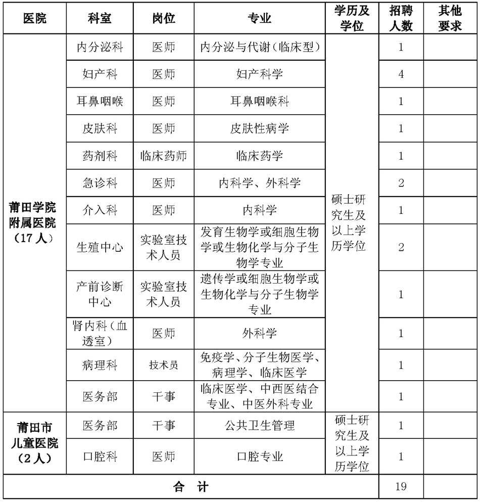 联系咨询电话:莆田学院附属医院人事科 0594-2385512