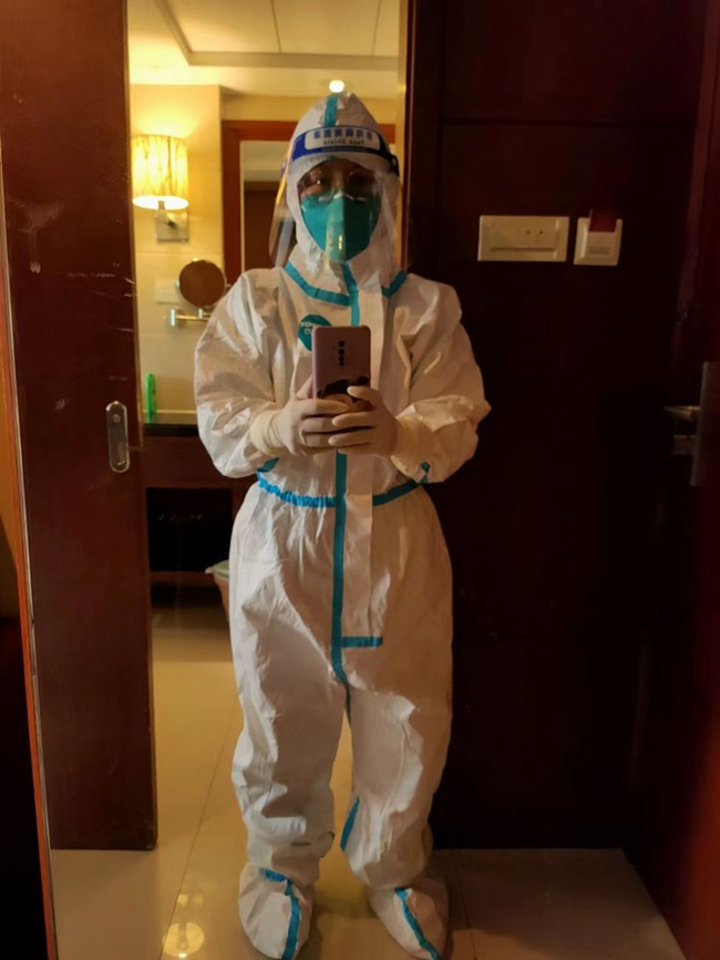 4月8日,为了能够以最好的状态迎接接下来的工作,在上海安顿好后的第一个黎明,我们在各自房间一遍又一遍的练习穿脱防护服。