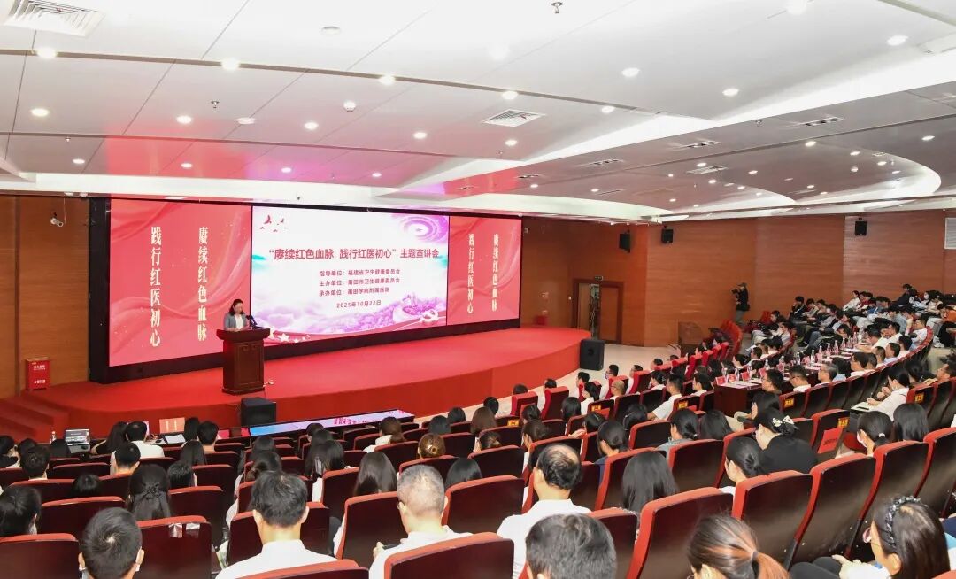 10月22日下午,由省卫健委指导、市卫健委主办、我院承办的“赓续红色血脉 践行红医初心”主题宣讲活动,在延寿院区门诊六楼国际学术会议厅举行。来自全市卫健系统的医务及行政人员,以及莆田学院、湄洲湾职业技术学院的医学生代表近500人齐聚我院,共同聆听红色医者的动人故事。